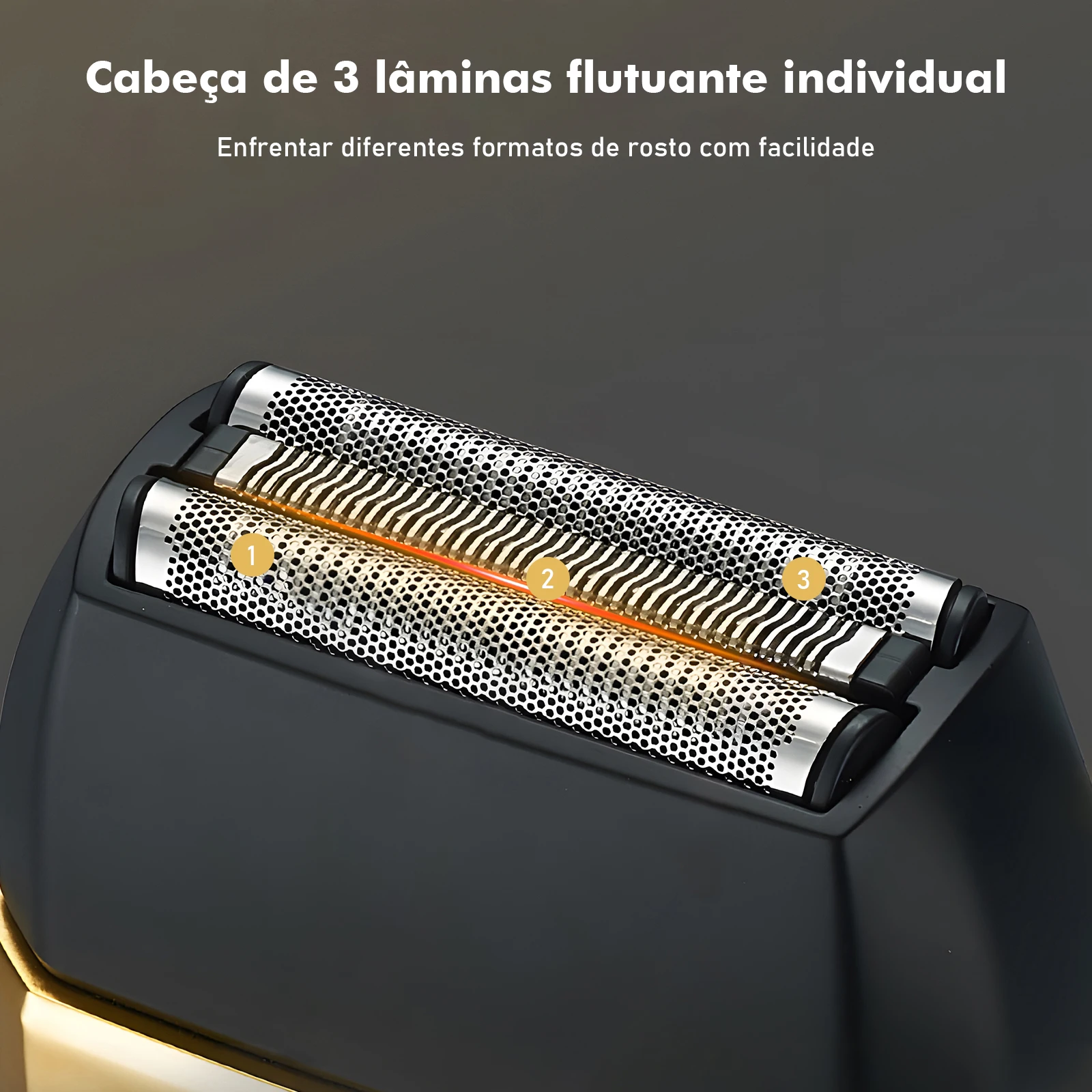 🔹 Lâminas Triplas de Precisão: Deslize suave e uniforme para um barbear mais rente, sem irritações ou cortes.
