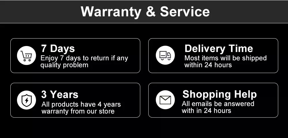 ?Oferecemos uma garantia de 3 anos para o produto.Durante este período, se o produto em si falhar (não causado por danos humanos ou água), você pode entrar em contato conosco para uma substituição gratuita.