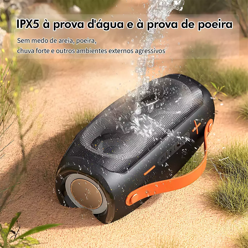 IPX5 à Prova d'Água e Poeira: Resistente a chuva, vento e poeira, perfeito para uso externo, enfrentando facilmente diversos ambientes adversos, permitindo que você curta música a qualquer momento e em qualquer lugar.