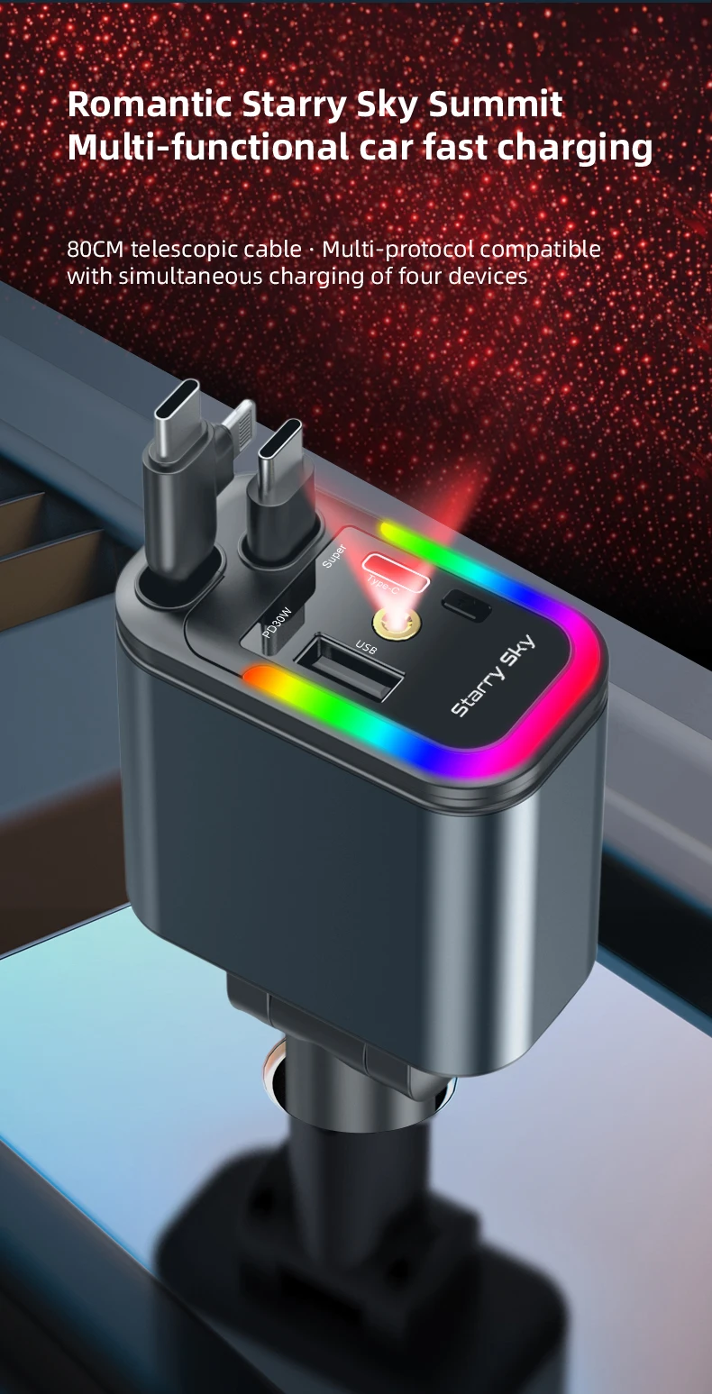 Apresenta um elegante e romântico céu estrelado que adiciona um toque de elegância e charme ao interior do seu carro. Não apenas um carregador funcional, mas também um acessório decorativo que realça o ambiente do seu veículo.