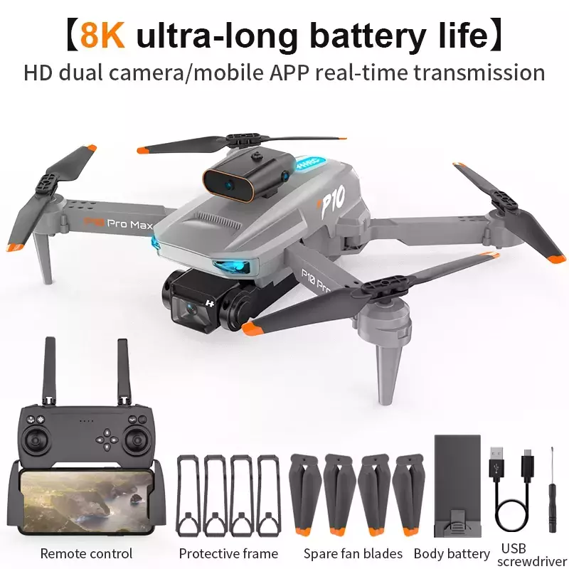 Descubra a inovação e praticidade do Drone P10, equipado com uma câmera de alta definição para capturar imagens e vídeos incríveis diretamente do céu. Ideal para entusiastas e iniciantes, este drone traz tecnologia avançada para tornar seu voo mais seguro e estável.