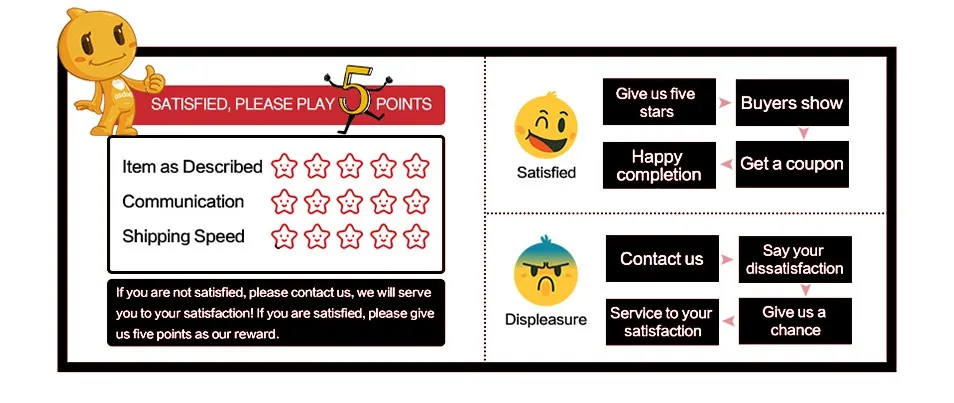 Deixe um comentário positivo e 5 estrelas se estiver satisfeito com nossos itens e serviços. Obrigado