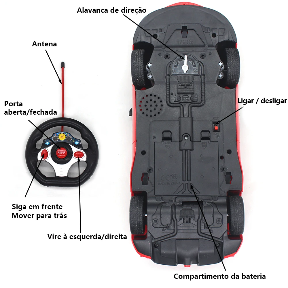 Função: Mover para a frente/reverso, Vire à esquerda/direita, porta pode ser aberta/fechada pelo controlador, flash farol/luz traseira