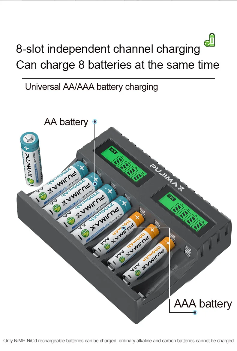 -- Nome: 8 Slots AA/AAA Carregador de Bateria Inteligente