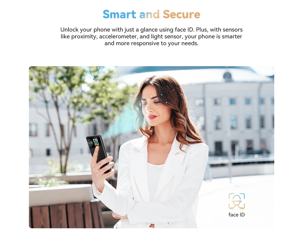 Unlock your phone with just a glance using face ID. Plus, with sensors like proximity, accelerometer, and light sensor, your phone is smarter and more responsive to your needs.