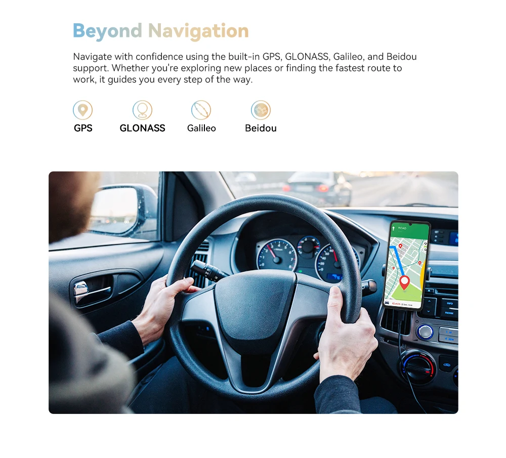 Navigate with confidence using the built-in GPS, GLONASS, Galileo, and Beidou support. Whether you're exploring new places or finding the fastest route to work, it guides you every step of the way.