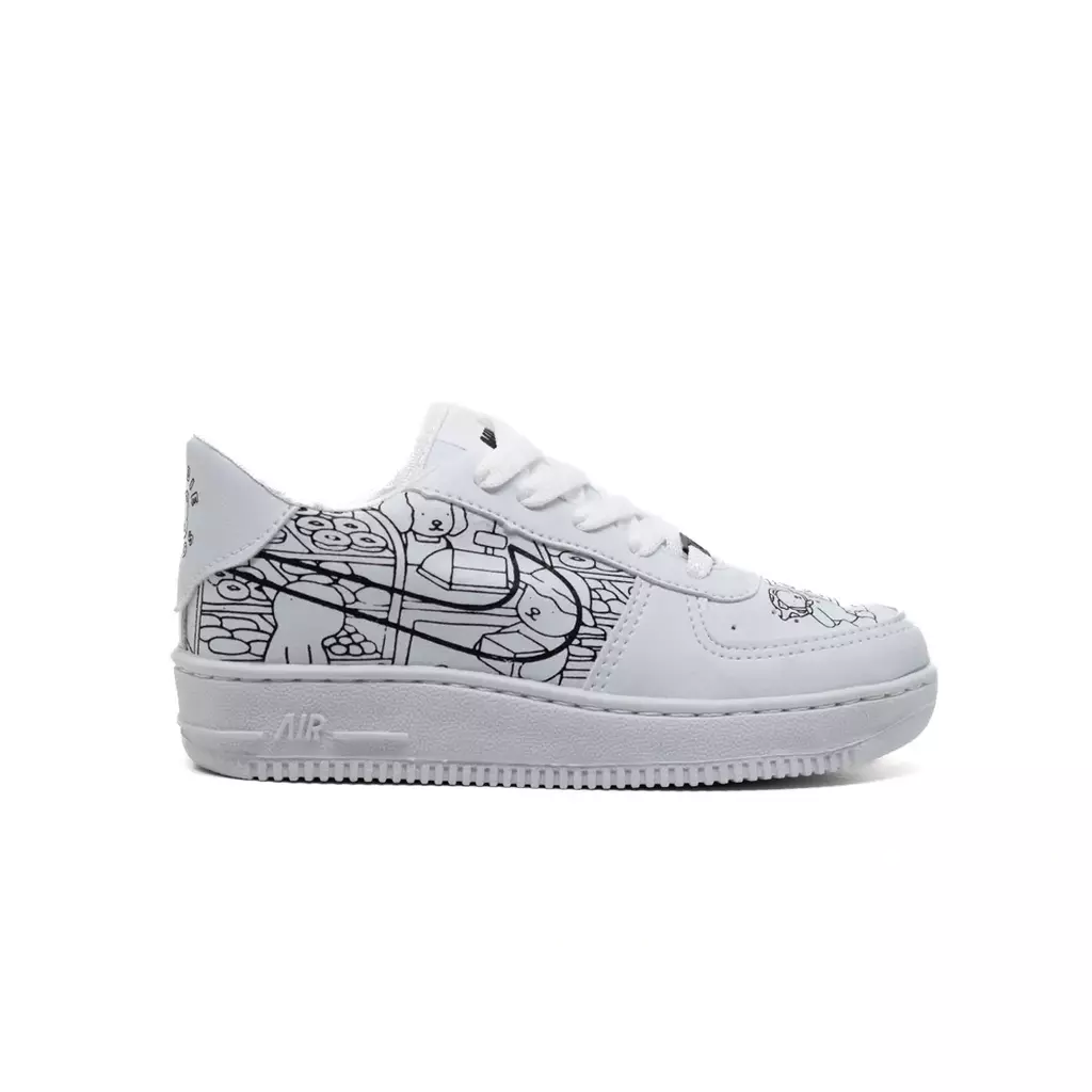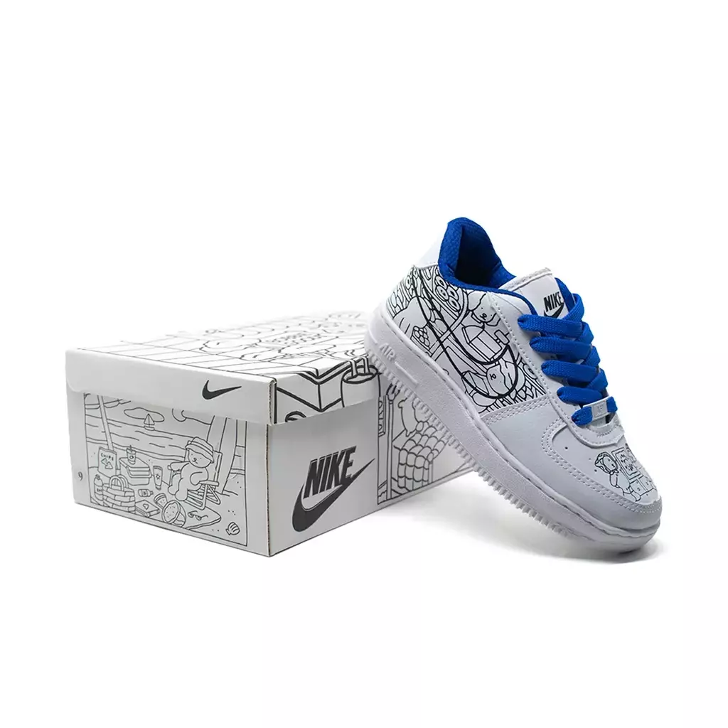 Deixe os pequenos brilharem com o Tênis Infantil Estilo NK Air Joy Creative! Esta edição especial transforma o clássico em uma explosão de criatividade, trazendo ilustrações encantadoras que remetem ao universo lúdico infantil. Com design colorido e divertido, este tênis é perfeito para crianças que amam expressar sua personalidade através de looks cheios de estilo e imaginação.